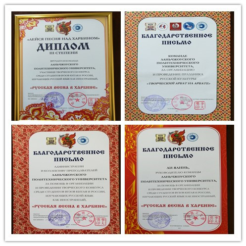 5月21日至24日,2017“哈尔滨俄语之春”中俄高校大学生俄语竞赛在哈尔滨理工大学举办。本次竞赛由俄罗斯世界基金会,中国俄语教学研究会,黑龙江省俄语学会、俄罗斯布拉戈维申斯克国立师范大学和哈尔滨理工大学主办,中国国际电视台俄语频道、黑龙江电视台、东北网络电视台协办。来自北京师范大学、华北理工大学、黑龙江大学等中俄21所高校百名选手参加了竞赛。黑龙江大学俄语学院博士生导师、首届国家级教学名师、普希金奖章获得者邓军教授出任赛事评委会主席,5名俄罗斯国内专家担任赛事评委。兰州理工大学俄语专业2名本科生由俄语系吴素珍老师带队、代表学校参加竞赛。