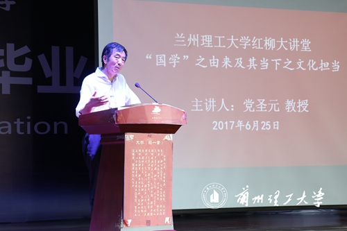 2017年6月25日下午,中国社会科学院研究员党圣元教授做客兰州理工大学红柳大讲堂,在西校区大学生活动中心作了题为“国学的由来及其当下之文化担当”的讲座。省社科联学会部部长王刚等专家出席报告会,学校党委宣传部部长段开军、文学院院长杨晓霭等全校500多名师生参加活动。报告会由党委宣传部副部长高国礼主持。
